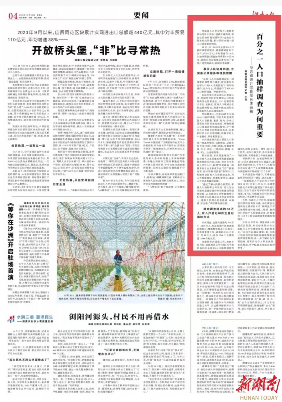 10月31日,《湖南日报》刊发通讯《1%人口抽样调查,为何重要——专访湖南省统计局副局长李跃辉》。全文如下: