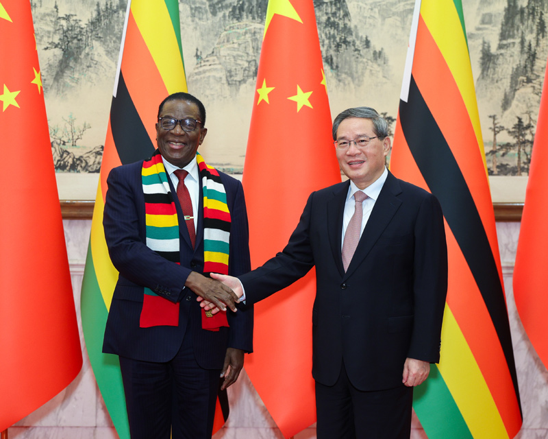 9月3日下午,国务院总理李强在北京钓鱼台国宾馆会见来华出席中非合作论坛北京峰会并进行国事访问的津巴布韦总统姆南加古瓦。新华社记者 刘彬 摄