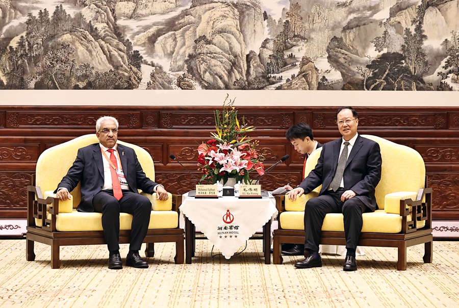 第七届中非民间论坛和第七届中非青年领导人论坛7月25日在长沙开幕。中午,省委副书记、省长毛伟明会见了摩洛哥众议院第一副议长穆罕默德·萨巴里率领的北非国家政党干部代表团一行。