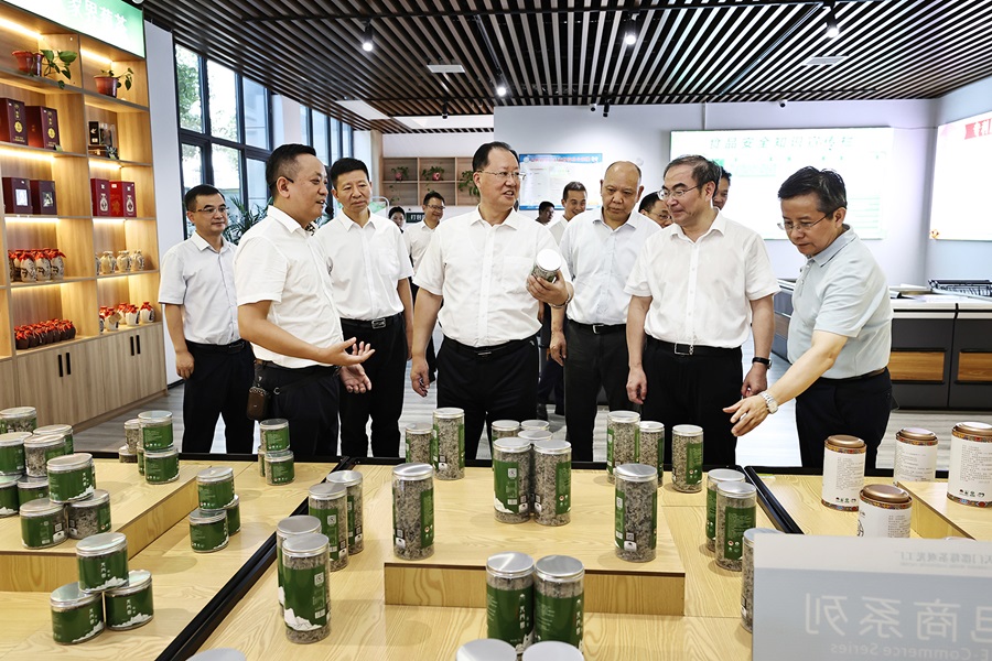 近年来,张家界高新区大力推动湘商回归,围绕生物医药、旅游商品、新材料、电子信息等产业,开展产业链上下游招商,“五好”园区建设来势喜人,综合实力大幅提升。湖南乾坤生物科技有限公司立足当地特有的生物资源,采取“公司+合作联社+合作社+农户”经营模式,发挥院士工作站等“智囊团”作用,推广莓茶绿色食品标准化种植基地3万亩,带动当地5000余名农户就业增收,入选国家高新技术企业。毛伟明鼓励负责人要做足“土特产”这篇大文章,持续在品质、工艺、标准上下功夫,不断延伸产业链条、擦亮产品品牌,促进农业“接二连三”发展,把农产品增值收益留在农村、留给农民。