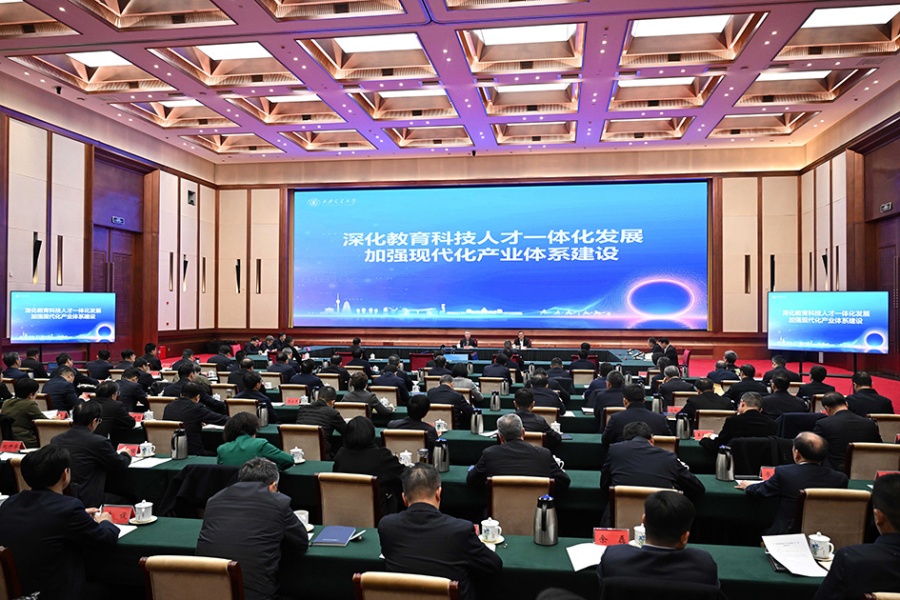 西安交通大学党委书记卢建军围绕“深化教育科技人才一体化发展 加强现代化产业体系建设”作专题辅导报告。
