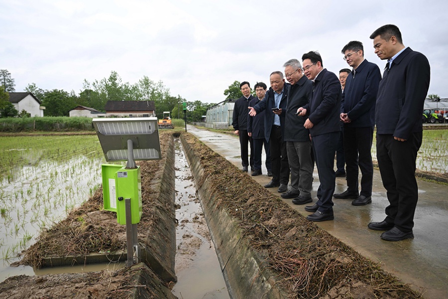 春耕时节,汉寿县岩汪湖镇武竺山村水稻生产万亩示范片,一排排秧苗整齐插入泥土,为田间铺上了一片新绿。来到该示范片,沈晓明察看秧苗长势、田间管理、农机农具农资保障等情况,与农技人员深入交流。他指出,要坚决扛牢维护国家粮食安全责任,强化农业科技支撑,加强基层年轻农技人员培养,提升专业服务能力,助力粮食生产提质增效,带动更多农民种粮致富。