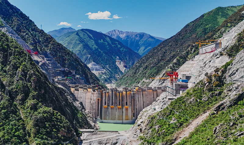 叶巴滩水电站地处四川甘孜州白玉县与西藏昌都市贡觉县交界处,是国家“十四五”规划102项重大工程之一,也是国家清洁能源基地——金沙江上游水风光一体化清洁能源基地的重要支撑项目。图为2025年6月30日拍摄的建设中的叶巴滩水电站。 新华社发 陈浩/摄