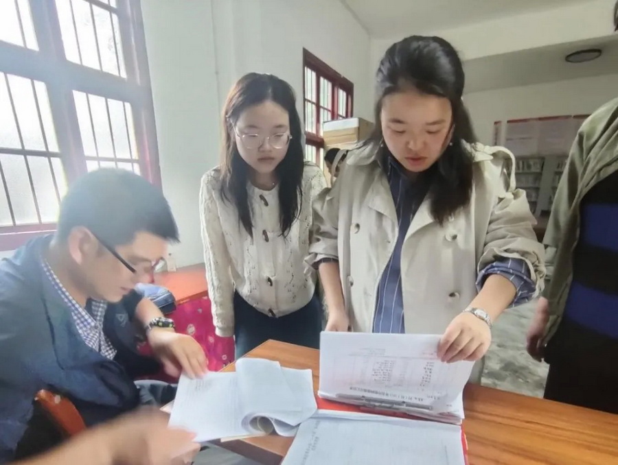 郴州资兴市统计局工作人员与当地农业农村局联合调研油菜生产情况。