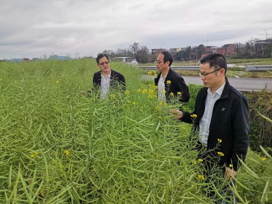 湘潭市统计部门会同农业农村部门一道对油菜生产情况进行实地调研查看。