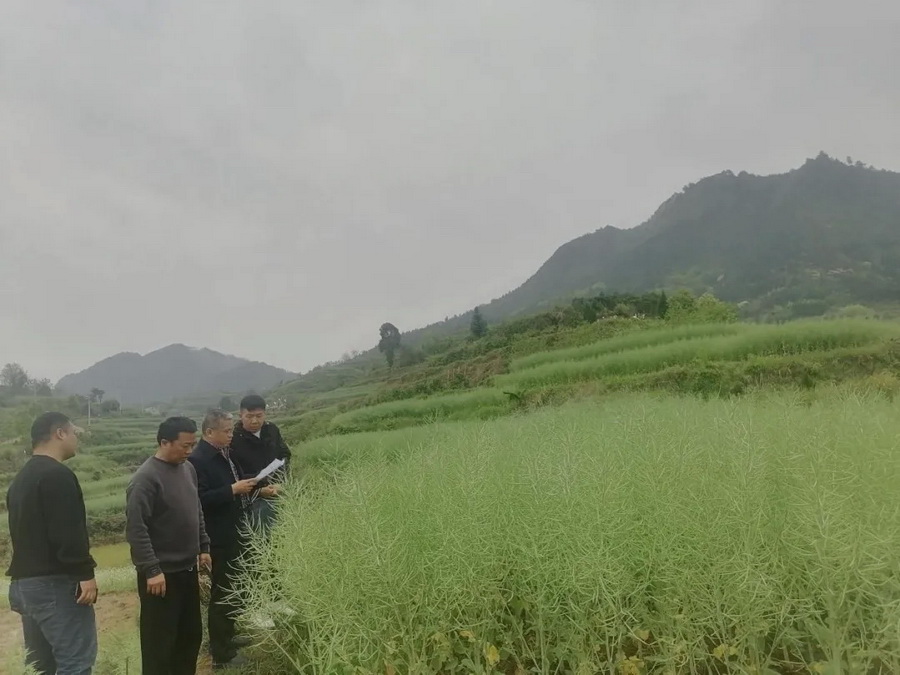 怀化市统计局与农业农村局工作人员联合调研油菜生产情况。
