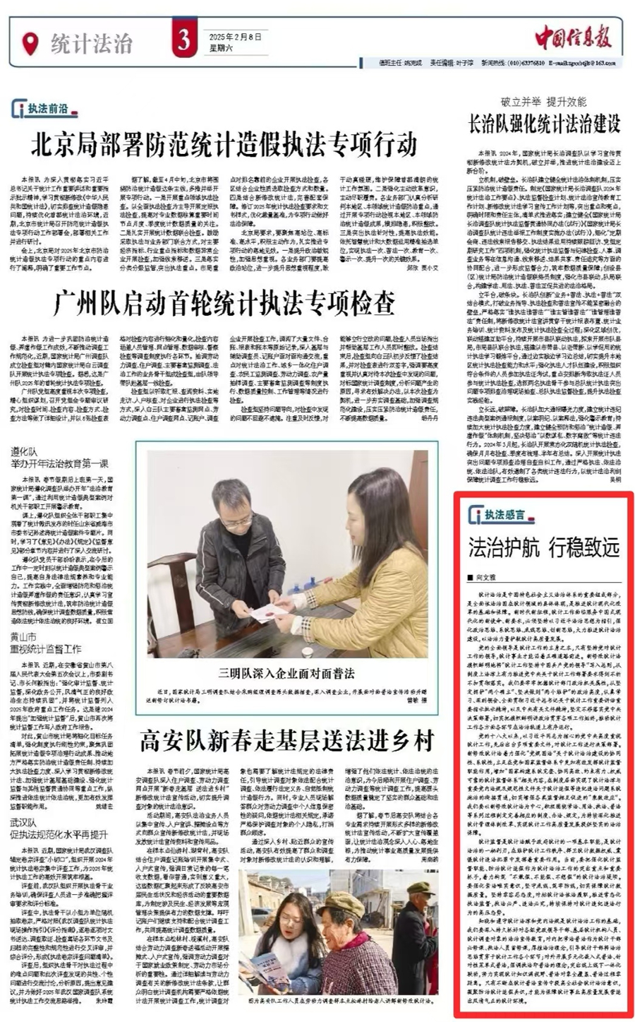 2月8日,《中国信息报》刊发消息《法治护航 行稳致远》,全文如下:
