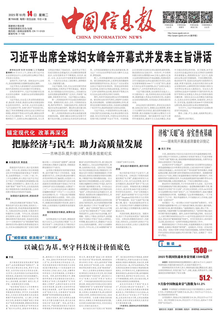 10月14日,《中国信息报》头版刊发通讯《淬炼“天眼”功 夯实普查基础 ——湖南局开展遥感测量轮训侧记》。全文如下: