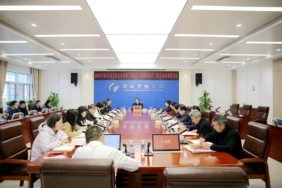 3月5日上午,省统计局党组书记、局长向世聪主持召开2026年第5次局党组会议暨树立和践行正确政绩观学习教育动员部署会议,深入学习《习近平关于树立和践行正确政绩观论述摘编》,传达学习中央党的建设工作领导小组会议精神和中共中央办公厅《关于在全党开展树立和践行正确政绩观学习教育的通知》精神,研究部署开展树立和践行正确政绩观学习教育相关工作。