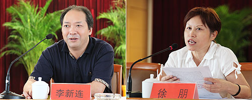李新连(左)出席会议并讲话;徐朋(右)主持会议