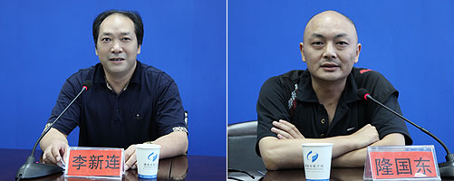 李新连(左)主持讲座;隆国东(右)作专题讲座