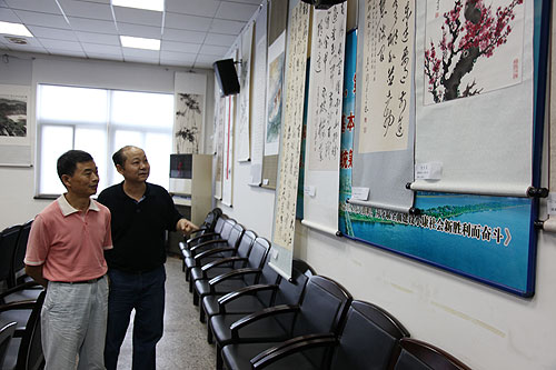 讲座开讲之前,叶剑伟还在省统计局监察室主任刘红旗的陪同下,和与会代表一起兴致勃勃地观看了湖南统计系统以“弘扬廉政文化 共建和谐机关”为主题的迎国庆廉政书画作品展的获奖作品。