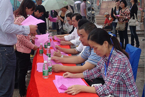 永州市统计局组织各县区统计部门围绕宣传新中国政府统计机构成立60周年的所取得的发展成就,积极开展形式灵活、丰富多样的宣传活动,进一步推广统计知识,扩大统计影响力,营造全社会重视和支持统计的良好氛围。在“统计开放日”宣传活动中,全市各级统计机构工作人员冒雨上街开展宣传,共发放“统计法”、“统计知识问答”、“统计四大工程”等系列宣传单 8000 多份,悬挂横幅 150多条,向群众讲解统计知识2300 余 人次。