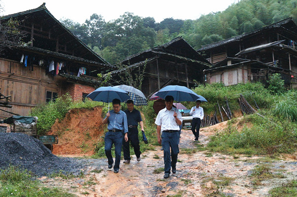 进村当天,一场大雨不期而至,村组、团寨进村入户的道路变得泥泞湿滑,但这依然阻挡不了省统计局主要领导对塘冲村驻村帮扶工作和侗族村民的一片关爱之情。在塘冲村,张世平冒雨查看了今年工作队驻村以来新建的垃圾焚烧炉和农田灌溉水坝等基础设施建设项目,并在村支两委干部的陪同下看望慰问了贫困户,给他们送上了慰问物资。