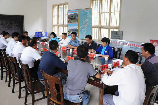 随后,张世平一行来到塘冲村小学,与县委县政府有关领导同志、县直有关部门、双江镇负责同志、省局驻村帮扶工作队员及村支两委干部进行座谈。座谈会上,塘冲村党支部书记吴昌敢介绍了村情村貌和工作队工作情况,塘冲村第一书记郭跃生详细汇报了近期驻村帮扶工作情况,通道县委副书记、县人民政府县长赵旭东在发言时指出,村支两委结合实际,因地制宜,因人施策,充分发挥塘冲村地处城郊的优势,目标更聚焦,发力更精准,搞好种植养殖产业和休闲观光农业,引领和带动贫困群体脱贫致富。
