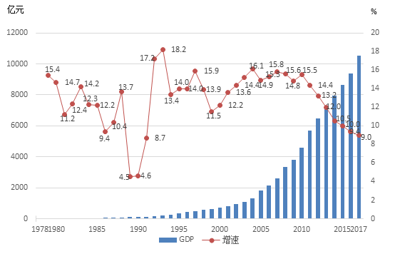 经济总量连续跨越台阶。改革开放40年来,全市生产总值由1978年的16.85亿元攀升至2017年的10535.51亿元,翻了9.3番,年均增长12.9%。从1978年的不到20亿元上升到1990年的102.40亿元,突破百亿关口用了12年时间;2003年达到1086.10亿元,从百亿突破到千亿,用了13年时间;2011年达到5683.69亿元,突破五千亿大关用了8年时间;2017年达到10535.51亿元,突破万亿元大关用了6年时间,经济发展步入了新阶段。从人均GDP看,1978年长沙人均GDP仅为370元,2017年人均GDP达到135388元,比1978年翻了8.5番,平均每年增长11.3%。按美元计算,2017年人均GDP超过19000美元。