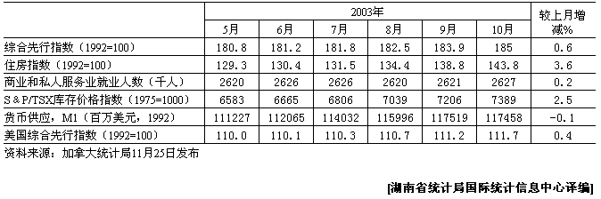 10月份加拿大综合先行指数