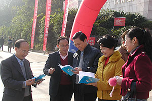 省统计局党组成员、纪检组长岳宗荣、长沙市统计局局长芮英姿、天心区统计局局长刘国强、青园街道统计站站长陈秀兰亲临现场进行宣传。湖南女子学院对活动非常配合支持,院党委书记易锡珍、副院长周美林、周松涛等来到现场进行友好交流,同时派出了强大的女学生阵容到现场协助做好普法宣传。