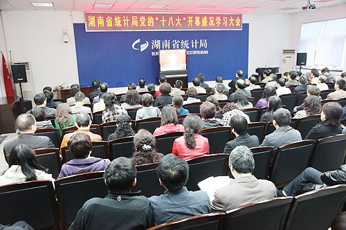 11月8日上午,省统计局全局干部职工集中收看了党的十八大开幕盛况,认真学习胡锦涛总书记在大会上作的报告。