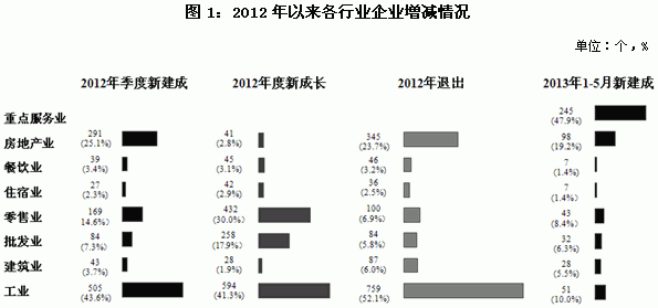 ——2012年及今年1—5月“四上”企业增减变化情况分析