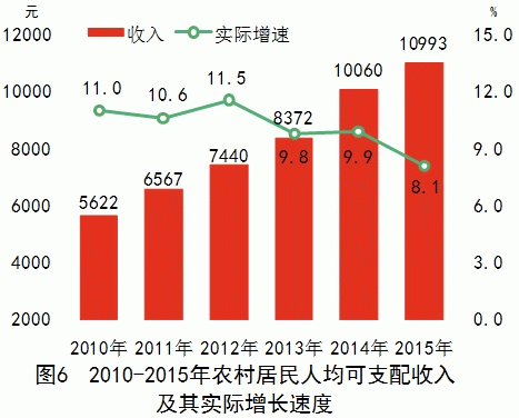全省全体居民人均可支配收入19317元,比上年增长9.6%,扣除价格因素实际增长8.1%;人均可支配收入中位数16654元。城镇居民人均可支配收入28838元,比上年增长8.5%,扣除价格因素实际增长6.9%;城镇居民人均可支配收入中位数27216元。农村居民人均可支配收入10993元,增长9.3%,扣除价格因素实际增长8.1%;农村居民人均可支配收入中位数10032元。分区域看,长株潭地区居民人均可支配收入30655元,增长8.4%;湘南地区18070元,增长9.2%;大湘西地区12877元,增长10.2%;洞庭湖地区17603元,增长9.6%。城乡居民收入比由上年的2.64:1缩小为2.62:1。