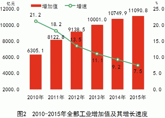 全省全部工业增加值11090.8亿元,比上年增长7.5%。规模以上工业增加值增长7.8%。在规模以上工业中,新产品产值增长18.8%,占工业总产值比重为17.8%,比上年提高4.5个百分点。高加工度工业和高技术制造业增加值分别增长8.7%和13.3%;占规模以上工业增加值的比重分别为37.2%和10.5%,比上年提高0.6个和0.2个百分点。六大高耗能行业增加值增长7.0%,占规模以上工业的比重为30.3%,比上年下降0.9个百分点。非公有制企业增加值增长9.5%。园区工业增加值占规模以上工业的比重为61.5%,比上年提高2.5个百分点。分区域看,长株潭地区增长8.5%,湘南地区增长7.4%,大湘西地区增长6.8%,洞庭湖地区增长7.2%。