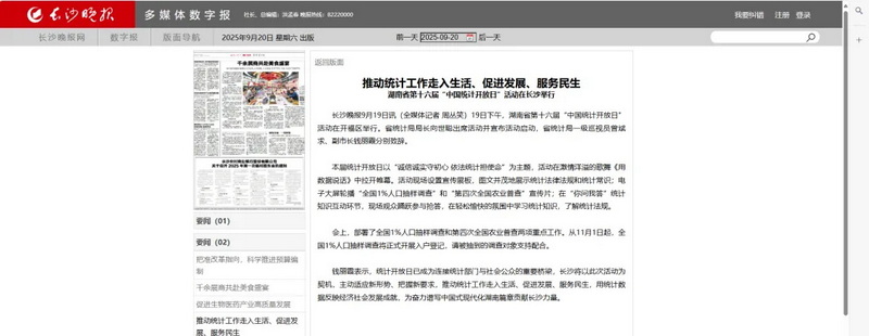 长沙晚报:推动统计工作走入生活、促进发展、服务民生 湖南省第十六届“中国统计开放日”活动在长沙举行
