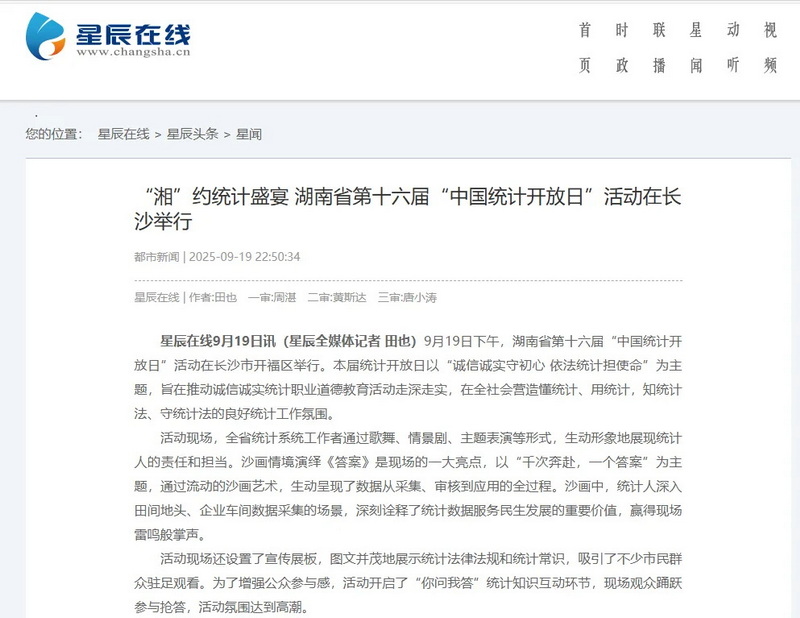 星辰在线:“湘”约统计盛宴 湖南省第十六届“中国统计开放日”活动在长沙举行