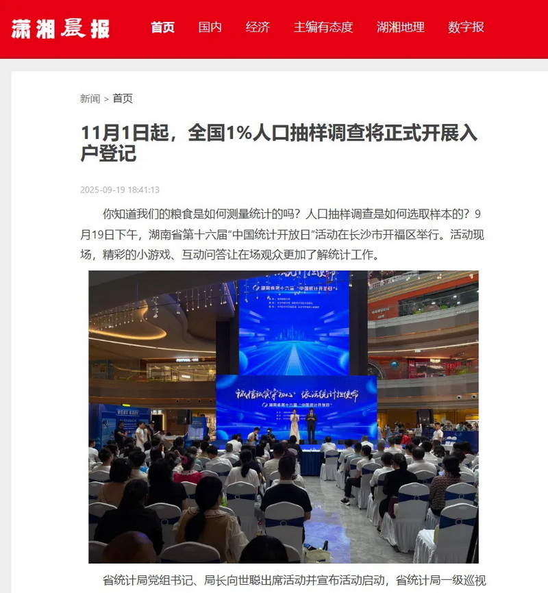 湖南日报:中国统计开放日”活动举行 我省今年“全国1%人口抽样调查”11月启动