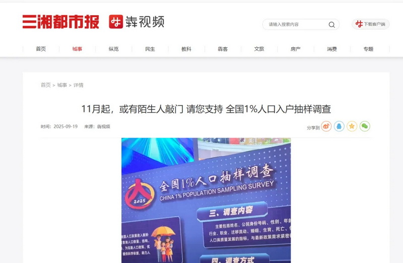 三湘都市报:11月起,或有陌生人敲门 请您支持 全国1%人口入户抽样调查
