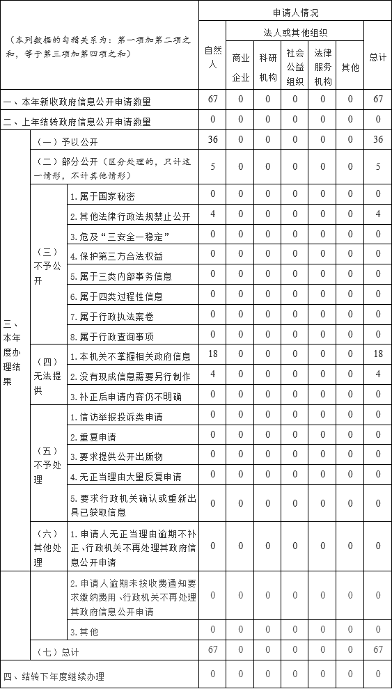(三)依法依规办理依申请公开。持续走好网上群众路线,在省统计局官网“政府信息公开指南”中明确依申请公开有关事宜,畅通申请渠道,设专门人员及时收集、办理、回复公众提出的依申请公开事项。全年收到依申请公开信息共67件,确保对每一项信息规范登记、即时批办、及时回复,按时办结率100%,做到件件有登记、事事有回应,全年未出现行政复议或行政诉讼情况。