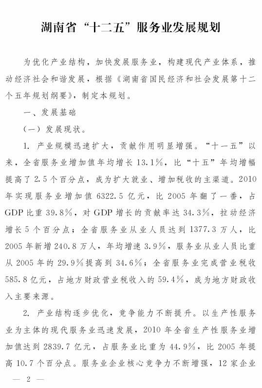 湖南省人民政府办公厅关于印发《湖南省“十二五”服务业发展规划》的通知
