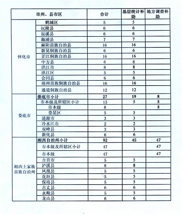湖南省财政厅关于下达2017年基层统计调查补助经费的通知