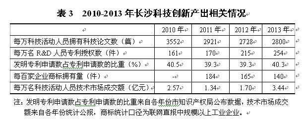 (三)创新成果不断涌现。随着科技创新环境的持续优化和创新投入的稳步增加,全市科技创新成果日益丰硕,相关专利、商标及科技论文等均呈现不同程度的增加。2013年全市共申请专利1.6万件,其中发明专利6424件,占专利申请总数的40.3%,比2011年提高1个百分点;全市科技活动人员共完成科技论文3.37万篇,平均每万科技活动人员拥有科技论文2800篇;每万名R&D人员拥有授权专利254件,比2010年增加93件;每万名科技活动人员技术市场成交额为3.44亿元,比2010年增加0.87亿元。