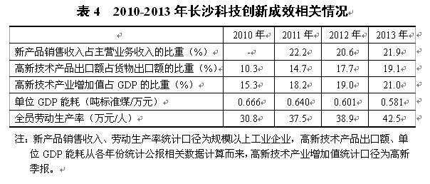 (四)创新成效稳中有增。从近年科技创新对全市经济社会发展的影响看,科技创新对产业结构调整、能源节约、提高劳动生产率、经济增长和提升国际竞争力等方面均表现出积极推动作用。2013年全市单位GDP能耗为0.581吨标准煤/万元,比2010年下降0.085吨标准煤/万元;全员劳动生产率为42.5万元/人,较2010年提高11.7万元/人,年均增长11.3%;全市规模以上工业企业累计实现新产品销售收入1616.4亿元,年均增长12.5%,占其主营业务收入的比重为21.9%;高新技术产业累计实现增加值1499.2亿元,占GDP的比重为21.0%,较2010年提高5.7个百分点;高新技术产品出口额占货物出口额的比重为19.1%,较2010年提高8.8个百分点。