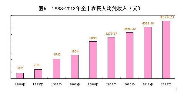 三是人民生活实现了由温饱不济到总体小康的跨越。建市之初,全市农民人均纯收入只有432元,张家界市可谓用老少边穷来形容,随着改革开放程度的日益加深,全市人民生活水平逐步提高。1988-2012年,全市农民人均收入由432元增加到4574元,总量增长10倍,年均增长10.3%。