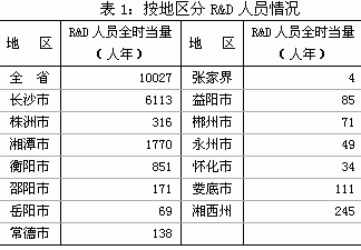 分地区看,长沙市R&D人员全时当量6113人年,占61.0%;其他13个市州3914人年,占39.0%
