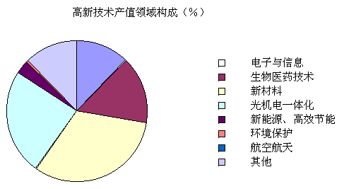 全省高新技术产业已基本形成了以新材料、机电一体化、生物医药和电子信息技术为主体的产业体系。2001年新材料领域完成产值190.46亿元、机电一体化领域144.81亿元、生物医药领域92.15亿元、电子信息领域72.41亿元,分别占全省高新技术产品产值的32.1%、24.4%、15.5%和12.2%。长沙软件园正式列入国家11大软件园基地,岳麓山大学科技园已由国家授牌,这些都为我省高新技术产业的快速发展奠定了基础。