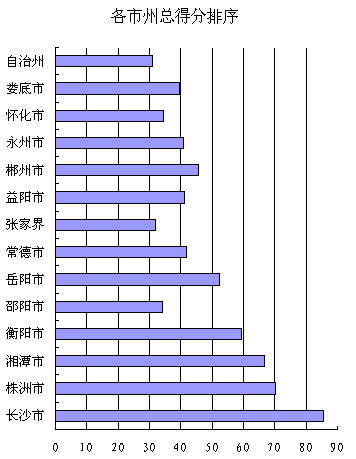 2001年各市州科技进步监测结果按照总得分排序为:长沙、株洲、湘潭、衡阳、岳阳、郴州、常德、益阳、永州、娄底、怀化、邵阳、张家界和自治州。与2000年各市州排名顺序相比,前3 名依旧保持强势,顺序没变,衡阳科技投入力度相对加大,由第5名上升到第4名,岳阳则由第4名下降到第5名,郴州仍然保持第6位,常德由第8位升到第7位,益阳则由第7位降到第8位,永州得益于长丰集团的新产品,名次由12位上升到第9位,娄底则由第9位降到第10位,邵阳由第10位降到第12位,怀化第11位、张家界和自治州第13位和第14位的位次仍然没变。按层次划分,除邵阳从第二层次降到第三层次和永州由第三层次升到第二层次外,其余市州的层次划分与2000年相同。