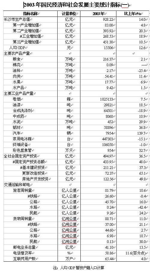 ⑵原国内生产总值从2004年1月1日起改称为“地区生产总值”,具体表述为“长沙市生产总值”。