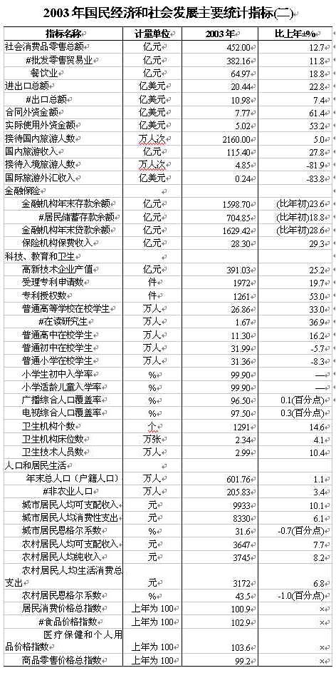 长沙市统计局关于2003年国民经济和社会发展统计公报