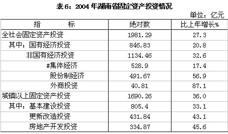 湖南省2004年国民经济和社会发展统计公报