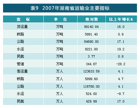 交通运输业稳步发展。全省全社会货物周转量1984.59亿吨公里,比上年增长9.7%;旅客周转量1226.59亿人公里,增长8.6%。机场旅客吞吐量979.72万人,增长18.4%。其中,黄花机场旅客吞吐量807.00万人,增长22.4%。