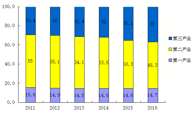 图2:2011-2016年全市三次产业结构