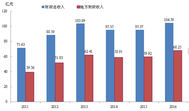 图3:2011-2016年全市财政总收入和地方财政收入