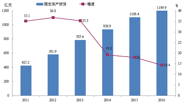 图5:2011-2016年全市固定资产投资及增长速度