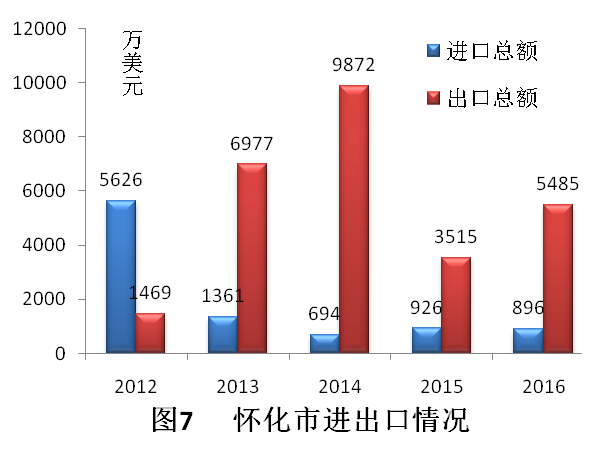 长沙海关驻怀化监管机构正式开办业务。全市全年实现进出口总额(海关口径)6381.00万美元、增长43.7%,其中,出口总额5485.00万美元、增长56.1%,进口总额896.00万美元、下降3.2%。实际利用外资4095.00万美元,下降64.1%。实际引进境内市外资金400.93亿元。