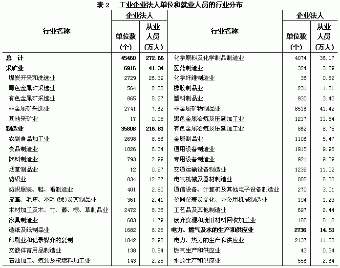 2004年末,我省共有工业企业法人单位4.55万个,就业人员[1]272.66万人;工业个体经营户27.76万户,就业人员87.21万人。