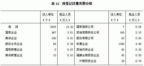 [1]就业人员:此次经济普查与常规统计口径不同,常规统计的口径比经济普查口径要大。经济普查就业人员是指2004年12月31日在第二、三产业单位和个体经营户在岗的就业人员。未包括年内实际从事个体经营活动未满三个月以上的城镇、农村的人员;农民家庭以辅助劳力或利用农闲时间进行的一些兼营性活动的人员;在城镇、农村从事灵活就业的人员如:保姆、家教等。