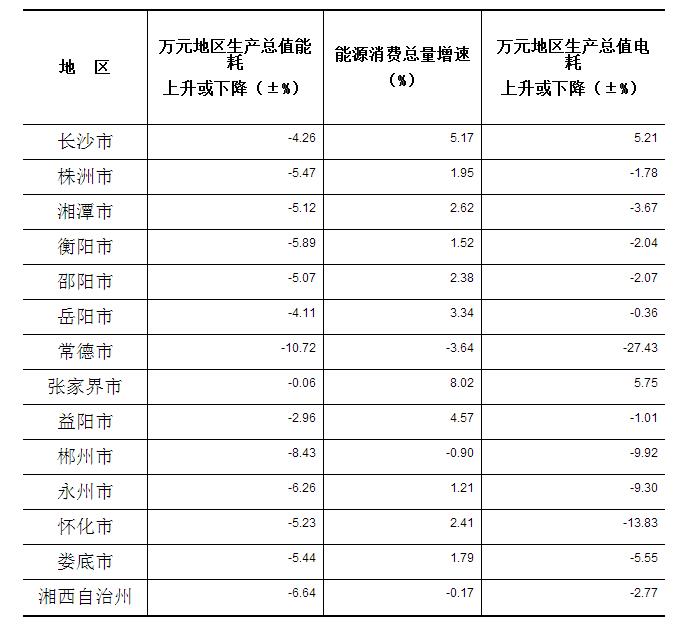 湖南省统计局 湖南省发展和改革委员会 湖南省能源局2016年各市州万元地区生产总值能耗降低率等指标公报